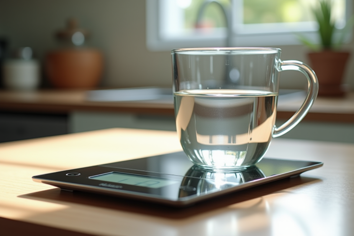 • Utiliser un récipient gradué : pour les liquides tels que l’eau, le lait ou le miel, utilisez un récipient gradué en millilitres. Cette méthode est particulièrement utile pour les liquides où la densité est proche de 1 g/ml.