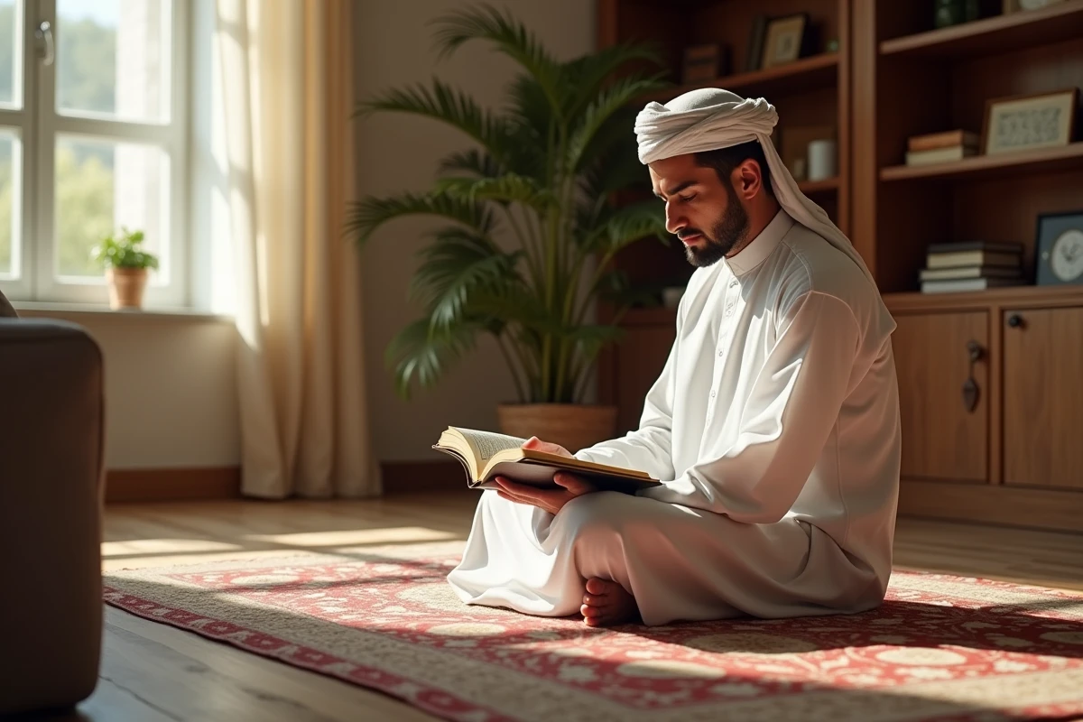- Privilégier un espace calme, par exemple après la salât al-Fajr ou en début d’après-midi, pour favoriser la concentration.