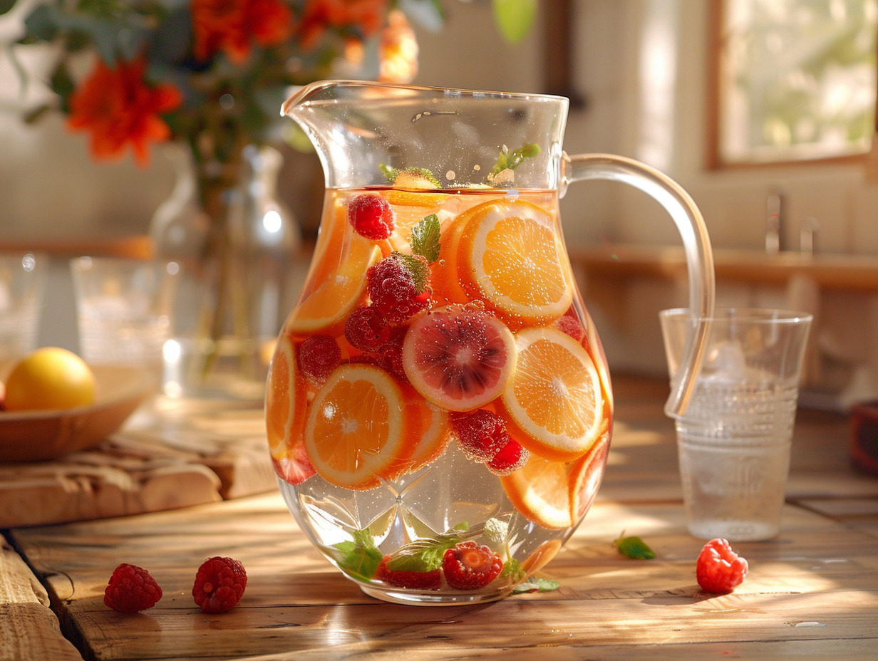 - Fruits : Les agrumes sont incontournables. Utilisez des oranges, des citrons et des limes pour leur fraîcheur. Ajoutez des morceaux d’ananas pour une touche exotique.